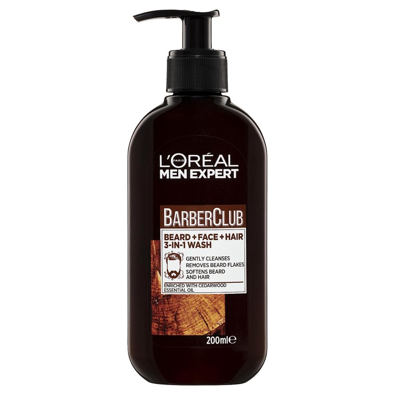 - Contents: 1x L'Oréal Paris Men Expert Barber Club 3-in-1 Beard; Face and Hair Cleansing Wash For Men; Enriched with Essential Oils; Volume: 200ml