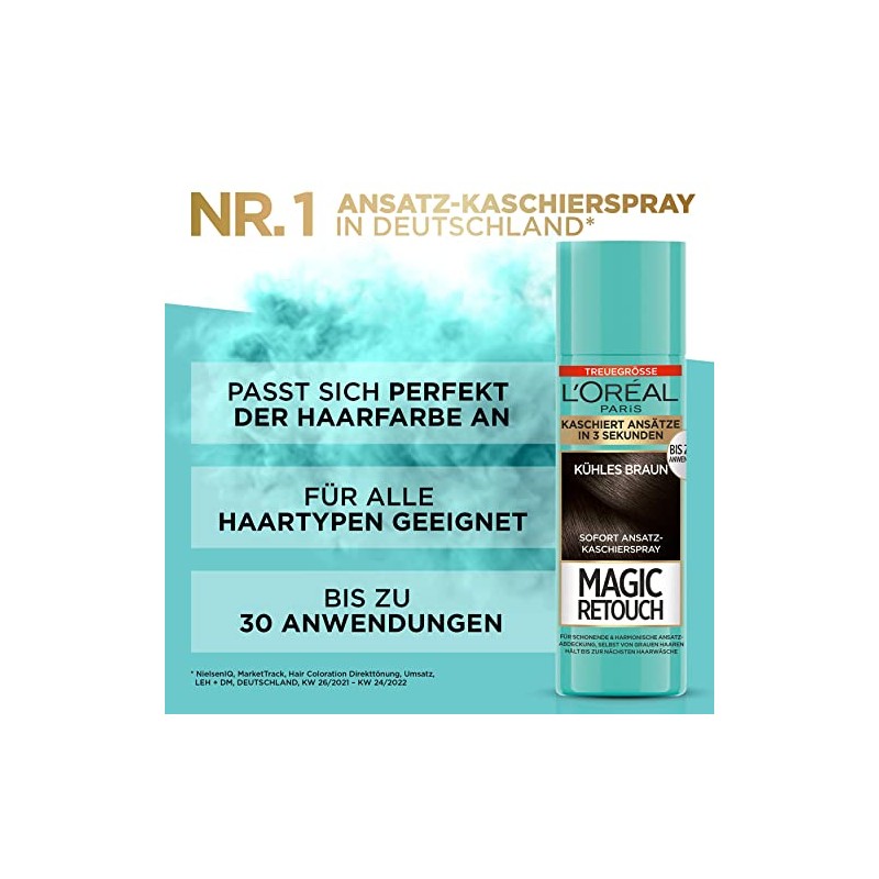 - Lieferumfang: L'Oréal Paris Magic Retouch Ansatz-Kaschierspray für stufenlose und natürliche Übergänge, Kühles Braun, 90 ml