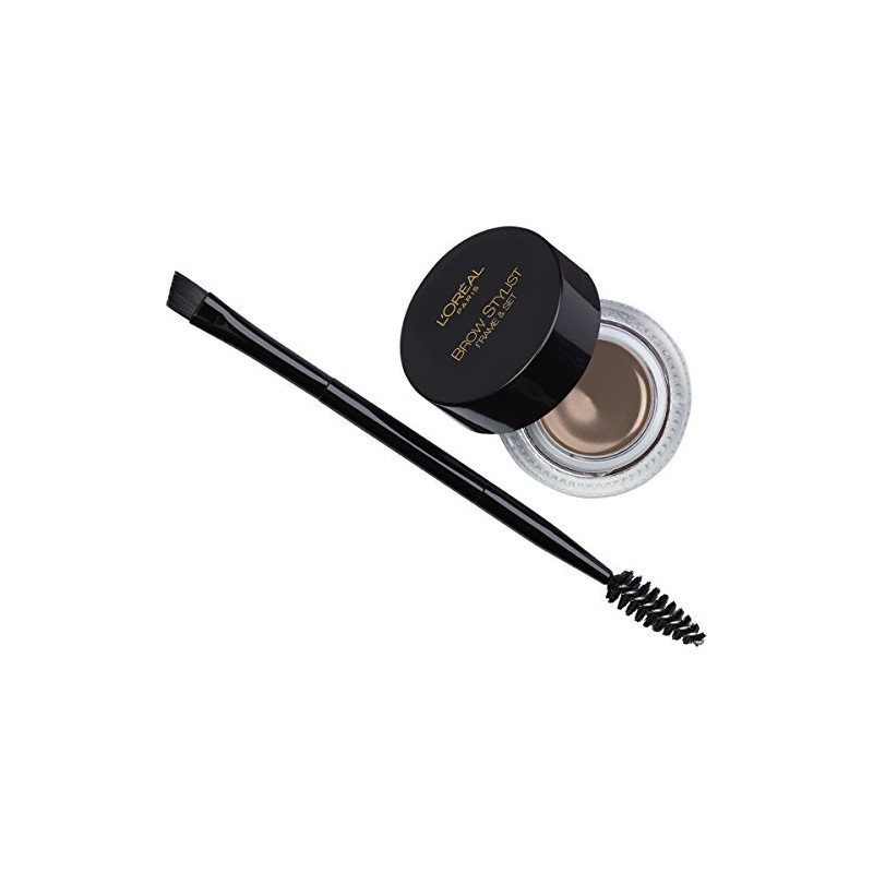 L’Oral Paris presents Brow Stylist Frame & Set , our 1st brow pomade with makeup designer brush and blending spoolie. Lightweight formula easily glides onto skin and brow hairs to frame and set your brow makeup look. Makeup designer brush draws in individual hairs, precisely shapes arches, and fills in eyebrows for a naturally defined and styled brow makeup look that stays put up to 24 hours. Tip: After dipping the makeup designer brush into the brow pomade, lightly dab to remove excess product for more precise application. • Up to 24HR waterproof eyebrow pomade • Makeup designer angled brush • Styled brows • Sculpting and Shaping Start with clean, brushed brows. 1. Dip the makeup designer brush lightly into the pomade. 2. Outline brow and define arch. 3. Draw in brow hairs in sparse areas with angled tip. 4. Fill in to desired intensity. 5. Comb & blend with spoolie to style your final look. Warning: Eye cosmetics in a scratched, infected or irritated eye and scratches from cosmetic eye applicators can lead to eye damage, and in extreme cases, even blindness. If your eye is scratched, stop using all eye cosmetics and go to an ophthalmologist immediately. Never apply this product in a moving vehicle.