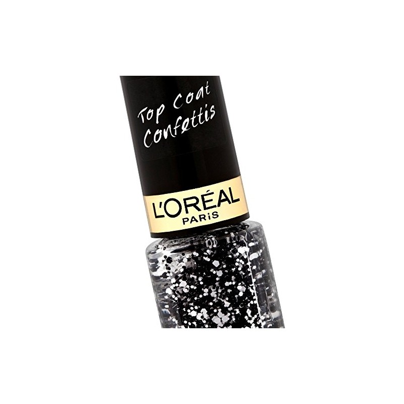 - The quick-drying top coats with integrated glitter particles in black and white from L'Oréal Paris give each coloured nail polish an individual and special look