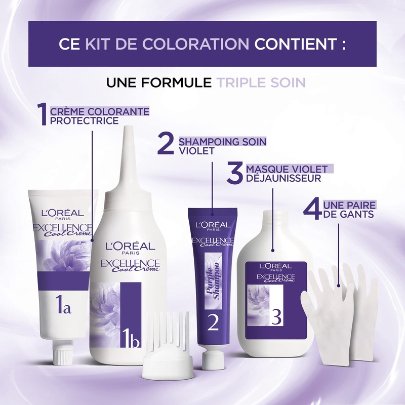 - Schont das Haar dank der violetten Entgilbungsmaske, da Violett die entgegengesetzte Farbe zu Gelb und Orange ist, neutralisiert die mit violetten Pigmenten angereicherte Formel sofort unerwünschte gelbe und orangefarbene Reflexe Woche für Woche. Das Haar wird nachhaltig und tief gepflegt