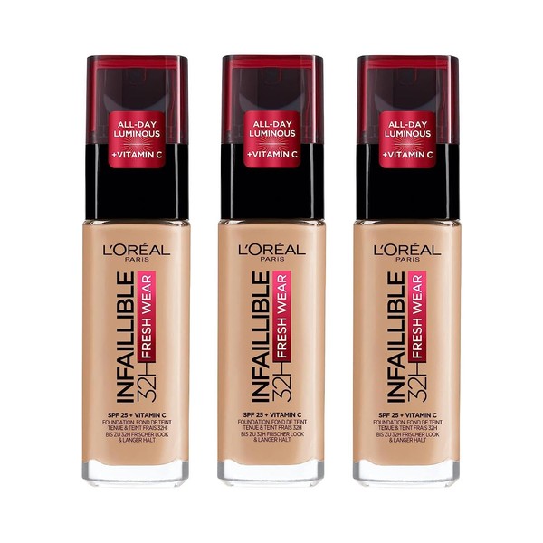 L'Oréal Paris Infaillible 24H Fresh Wear Make-Up 140 Golden Beige Pack of 3 x 30 ml