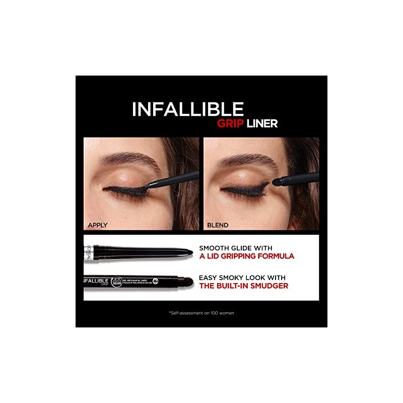 L'Oreal Paris Infallible Grip Mechanical Gel Eyeliner Pencil, Smudge-Resistant, Waterproof Eye Makeup with Up to 36HR Wear, Intense Black, 1 Kit
