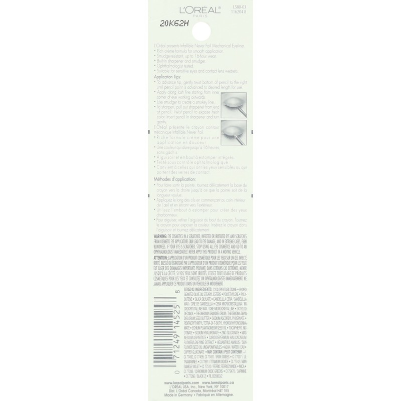 - INFALLIBLE NEVER FAIL SMUDGE-PROOF EYELINER: Mechanical pencil eyeliner with built in sharpener is formulated to glide on easily and stay put for up to 16hrs. This rich, creamy eye pencil delivers long-lasting fade-proof color.