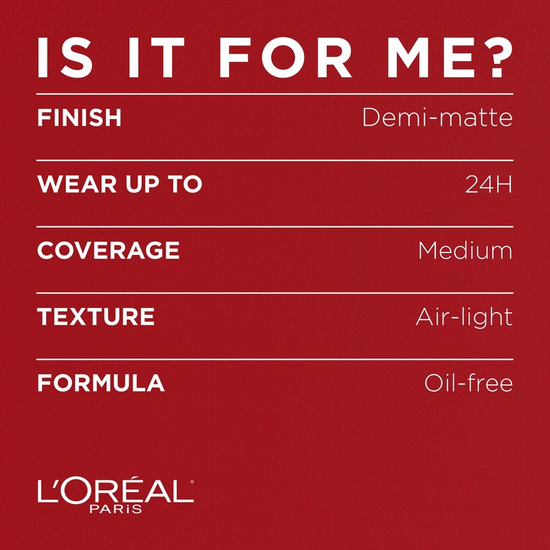 - L'OREAL PARIS INFALLIBLE PRO MATTE FOUNDATION: Lightweight and creamy, this full coverage foundation goes on smooth with a demi matte finish that lasts up to 24 hours, hiding imperfections for a smooth, clear complexion