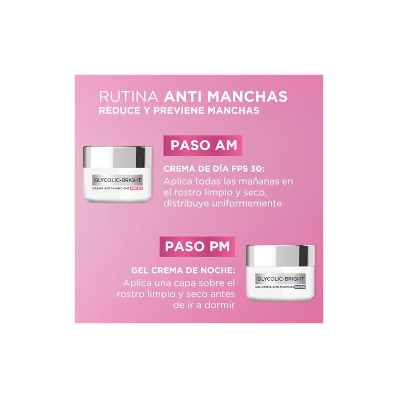 🌟 ⭐ L'Oréal Paris Kit Glycolic Bright: Crema día 50ml + Crema noche 50ml con Melasyl, Ácido Glicólico ⭐ 🌟