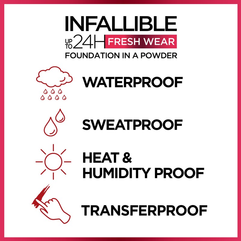 L’Oréal Paris L'Oreal Paris Makeup Infallible Fresh Wear Foundation in a Powder, Up to 24H Wear, Waterproof, Beige Sand, 0.31 oz.