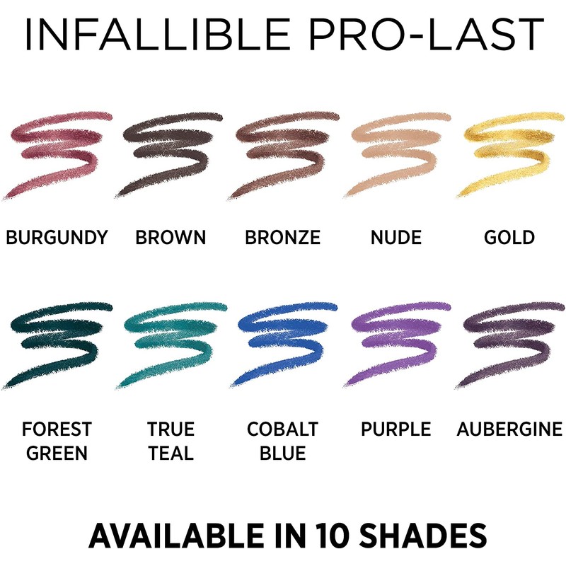 - Infallible Pro-last is a sharpenable, pencil eyeliner delivering up to 24 hour wear of rich, creamy, glide-on color