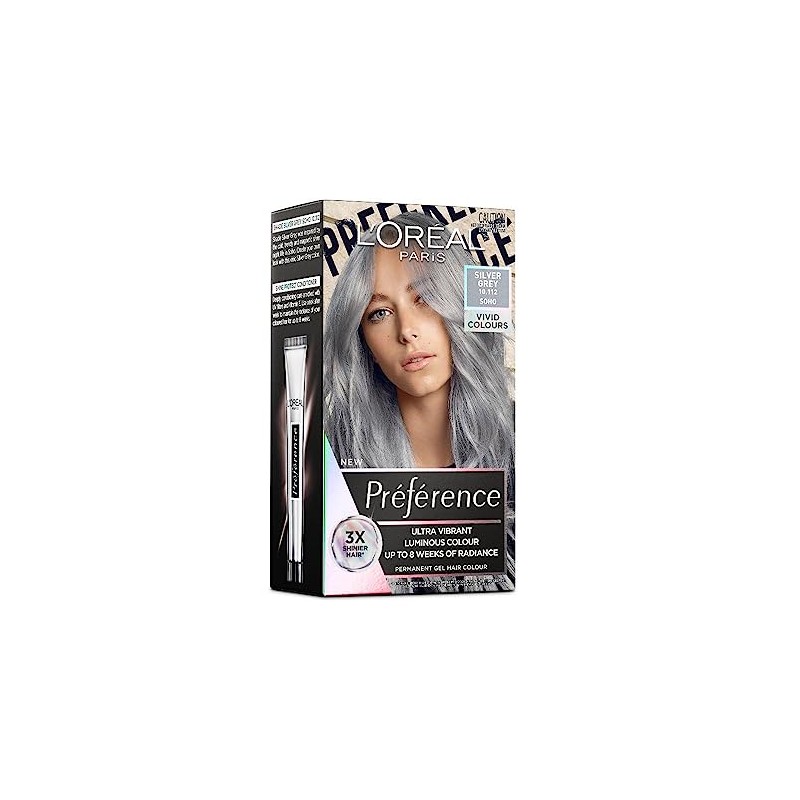 - Contents: 1x L'Oréal Paris Préférence Vivids, Box includes: 1x caring colourant crème, 1x developer crème, 1x conditioner, 1x pair of protective gloves, Shade: 10.112 Silver Grey