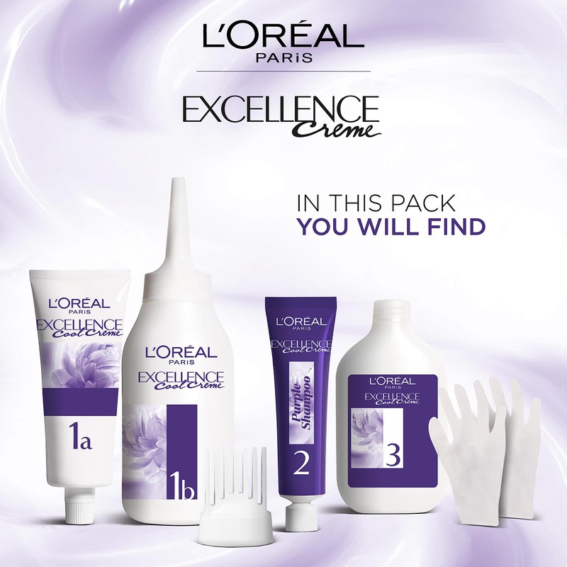 • Contents: 1x L'Oréal Paris Excellence Cool Créme, Included in box: 1x caring colouring cream & developer, 1x caring scalp shampoo, 1x caring light weight mask and 1x comb applicator, Shade: Ash Dark Brown 3.11