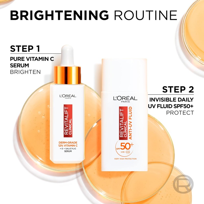 L'Oréal Paris Revitalift Clinical 12% Pure Vitamin C Serum (30ml) & SPF 50+ Invisible Fluid (50ml) Duo for Face, Antioxidant Protection, Brighter Smoother Skin, UV Protection