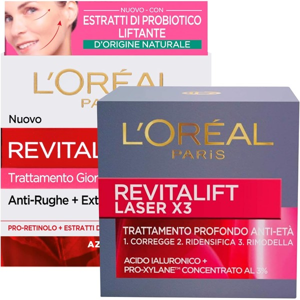 L'Oréal Paris Revitalift Fragrance Free Anti-Wrinkle Face Cream with Probiotic and Pro-Retinol Lifting Effect 50ml + Laser Cream X3 Anti-aging Reshaping Treatment with Proxylane 50ml - 2 Creams