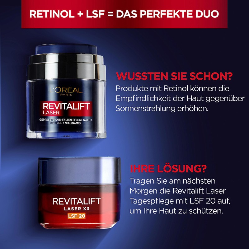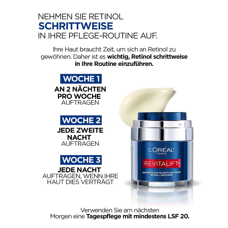 - Box contents: L'Oréal Paris pressed anti-wrinkle night cream with retinol and niacinamide for an even complexion, 1 x 50 ml