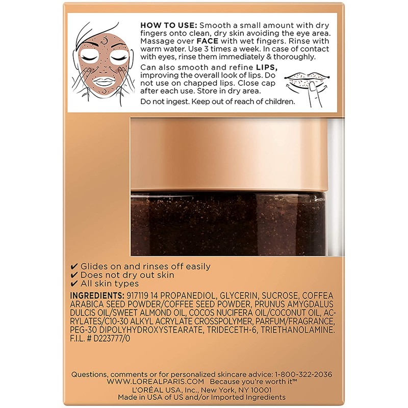 L'oreal Paris Skin Care Pure Sugar Face Scrub With Kona Coffee To Instantly Resurface & Energize for Soft Glowing Skin, 1.7 Ounce