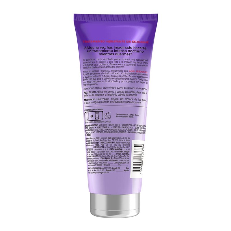 L'Oréal Paris Tratamiento nocturno para el pelo con Ácido Hialurónico Elvive Hidra Hialurónico hidratación intensa para cabello deshidratado hasta 72 horas 370 ml