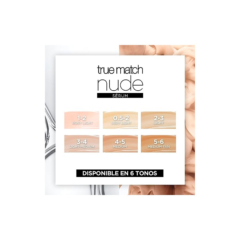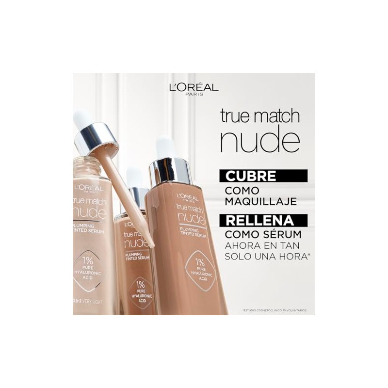 Descubre True Match Nude Sérum con Color con 1% de Ácido Hialurónico de L'Oréal Paris. La combinación perfecta de cuidado de la piel y maquillaje. Su innovadora fórmula combina los beneficios de un suero para el cuidado de la piel con la luminosidad y la cobertura de una base, dejando la piel con un acabado naturalmente luminoso para una apariencia impecable.