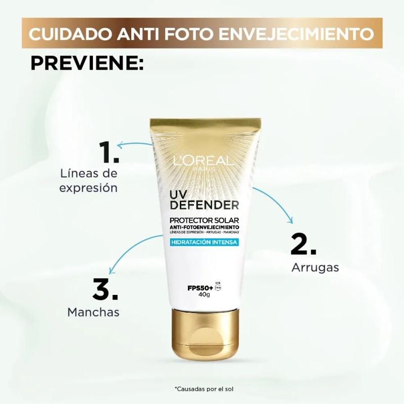 L'oréal Paris uv defender protector solar hidratación 40g 50fps