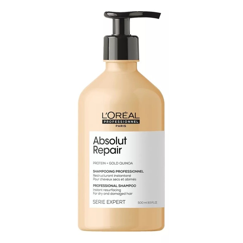 Shampoo L'oreal Absolut Repair para cabello dañado de 500 ml. Este producto es un reparador de cabello dañado. Su fórmula permite que el cabello sea manejable y esté listo para secar. Contribuye a proteger y reparar las puntas abiertas para un resultado brillante, suave y no graso.