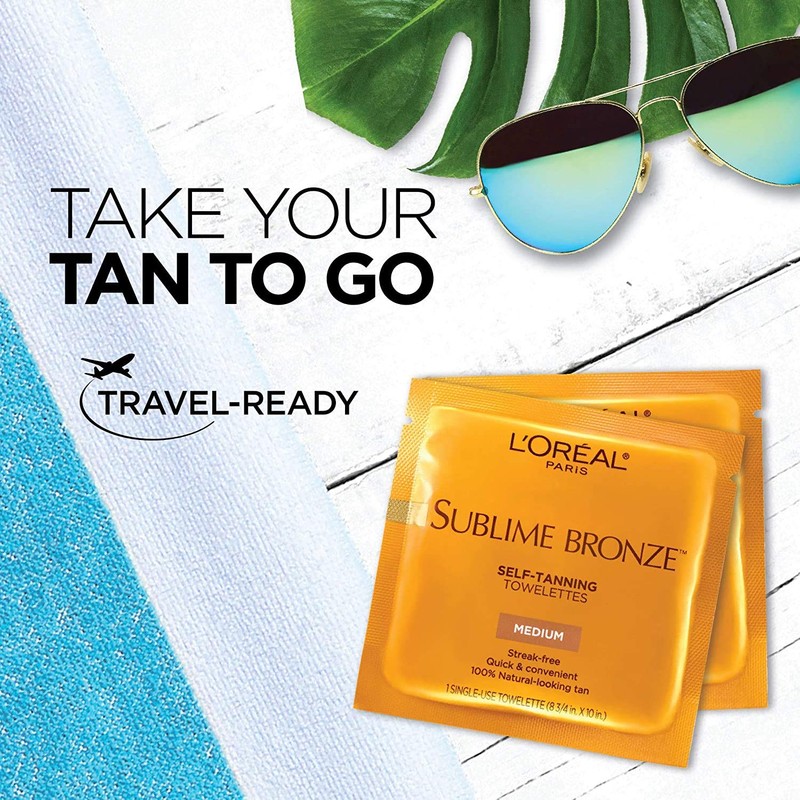 L'Oreal SUBLIME BRONZE Self-Tanning Towelettes For Body Medium Natural Tan 6 Each (Pack of 2)