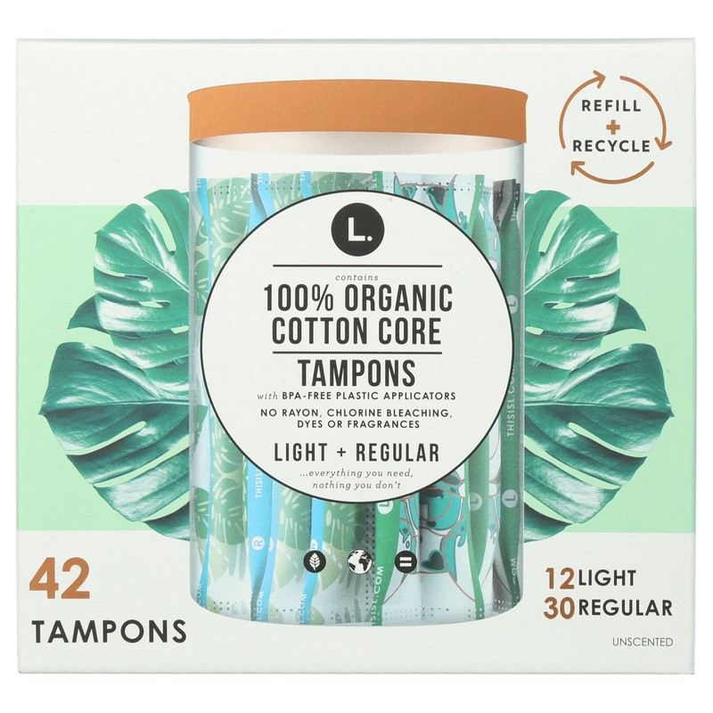 L. Organic Cotton Tampons Multipack, Light and Regular, 42 Ct