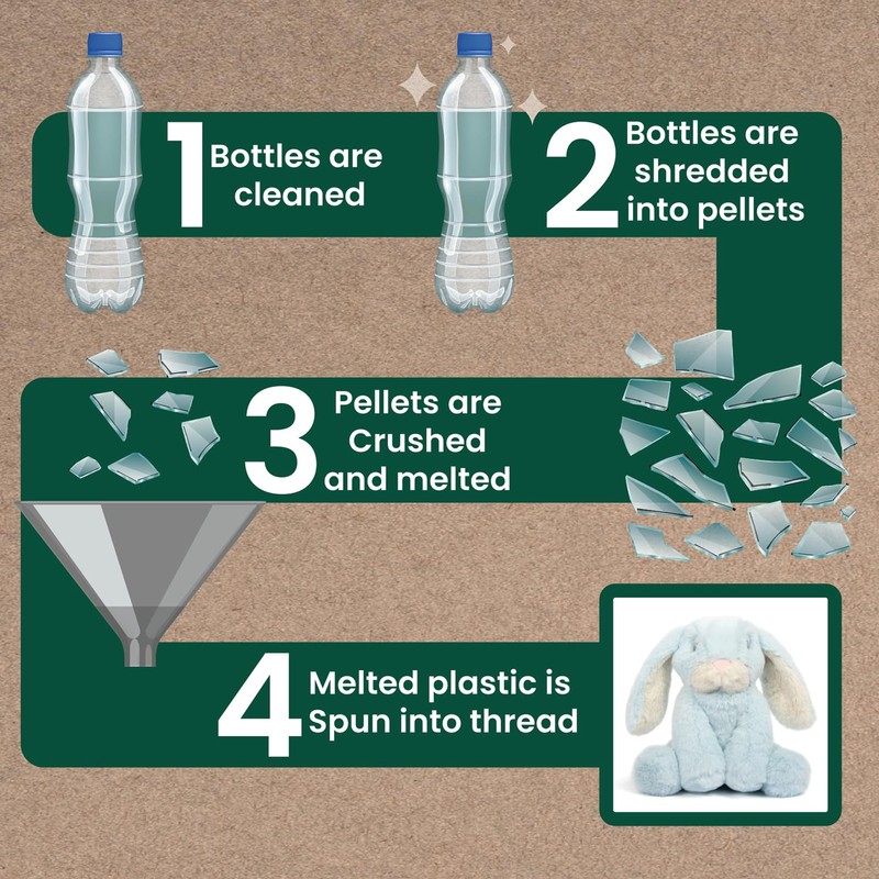 - Eco-Friendly Choice: Our Teddy for kids is crafted with care using recycled bottles, making it an eco-conscious choice for parents who prioritize sustainability. By repurposing materials like plastic bottles into a soft and cuddly stuffed animal, we promote environmental responsibility while offering a safe and enjoyable toy for children.