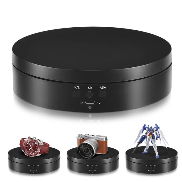 - 📷 Adjustable Rotation: The electric rotating turntable adopts 360° rotating turntable design, you can manually adjust the rotation speed and direction manually. 2 wraps per minute, 4 wraps per minute, 6 wraps per minute, 45 degrees back-and-for, 90 degrees back-and-for, 180 degrees back/back/back/360 degrees back to suit your different needs. It can be displayed in a better direction for product photography, presentation