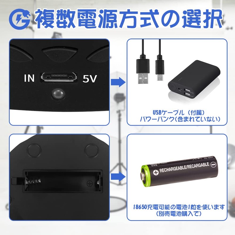 - Use USB cable or 3 AAA batteries or 1 18650 rechargeable battery (battery not included)