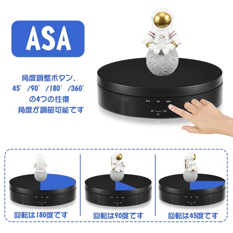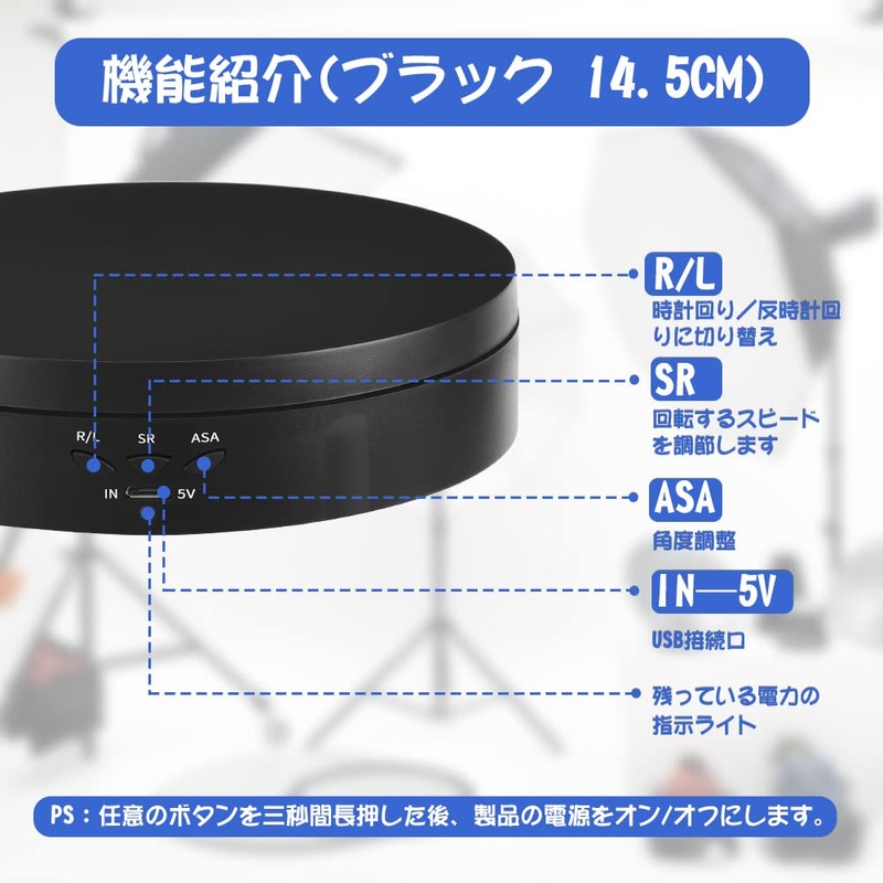 - 📷 Adjustable Rotation: The electric rotating turntable adopts 360° rotating turntable design, you can manually adjust the rotation speed and direction manually. 2 wraps per minute, 4 wraps per minute, 6 wraps per minute, 45 degrees back-and-for, 90 degrees back-and-for, 180 degrees back/back/back/360 degrees back to suit your different needs. It can be displayed in a better direction for product photography, presentation