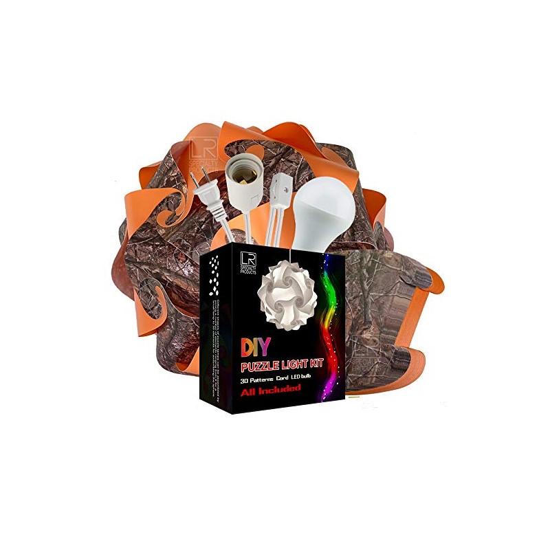 L&R Camouflage DIY Puzzle Jigsaw Lamp Kit - Cord & Bulb Included - Shade Light - Makes 13 inch Globe Shape ( Hunting Camo - Orange)