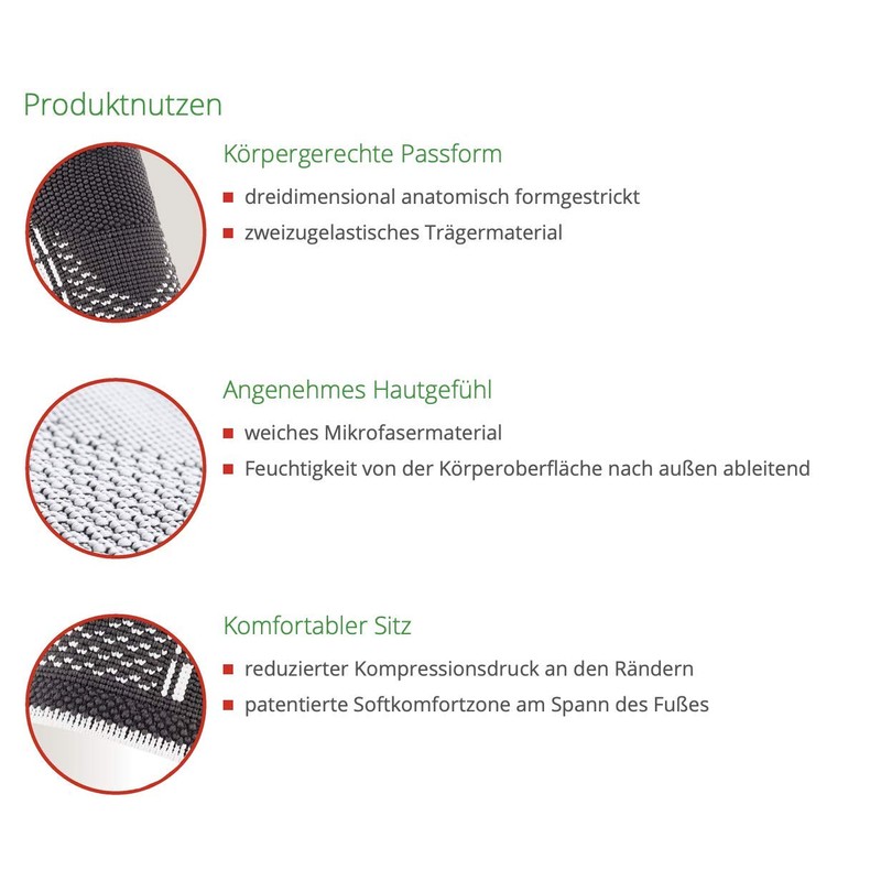 Soft comfort zone on the instep.Three-dimensional anatomically shaped knit.