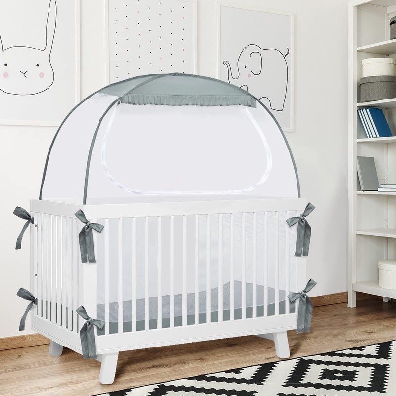 - Easy to install: The crib safety tent is designed with an automatic pop-up structure! You can just open the package and put the tent on the crib.Measures 55.2 "x 51.6" x 27.6 ", suitable for most standard-size cribs