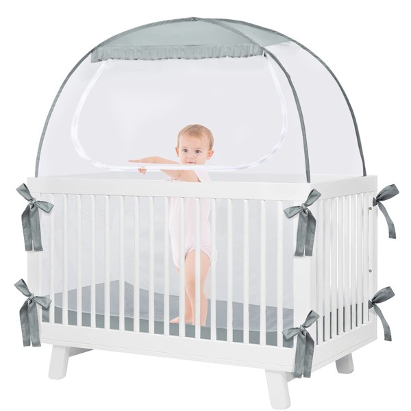L RUNNZER Baby Crib Tent, Pop Up Crib Canopy to Keep Baby from Climbing Out, Safety Crib Net Mosquitoes Net with See-Through Mesh, Fits Most Standard Cribs