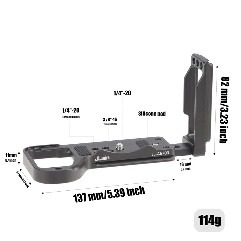 • L Platte Custom für Sony Alpha A6700 (ILCE-6700) Kamera, perfekter Übereinstimmung mit der Kamerakörper, schwankt oder verdreht nicht, wenn sie in der Halterung montiert sind, und ermöglicht den vollen Zugang für die Batterieschlupfabdeckung und die gesamte Kabelschnittstelle.