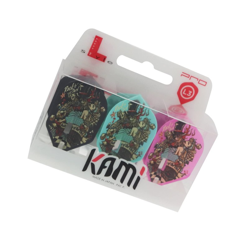 The L-Style Champagne Flight Kami dart flights are made of particularly robust plastic, which ensures great durability. Nevertheless, the approximately 180 micron thick L-style flights are not too rigid and inflexible, so they do not provoke bouncers or distractions. The special thing about the high-quality champagne flights Kami is the perfect 90° angle, which these flights have as standard. Thanks to this optimal aerodynamics, L-Style flights have remarkably clean flight behaviour and thus help the entire dart to a better trajectory. To further improve the life of the L-Style Champagne Flights Kami, the side edges have been reinforced and a flight protector incorporated.