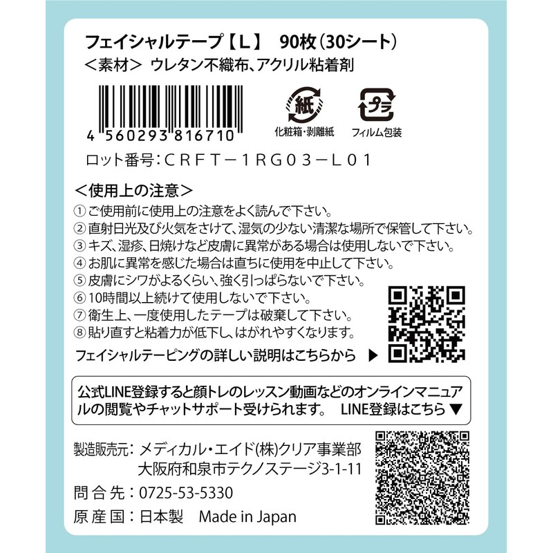 L Tape (90 sheets, approx. 2 months) for face lines and forehead