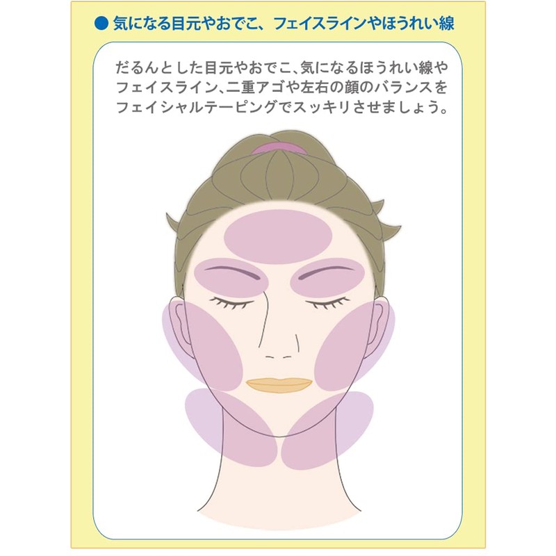 Special skin-friendly stretch tape pulls and shapes the skin and muscles under the horn, eyes, jojojo, and chin