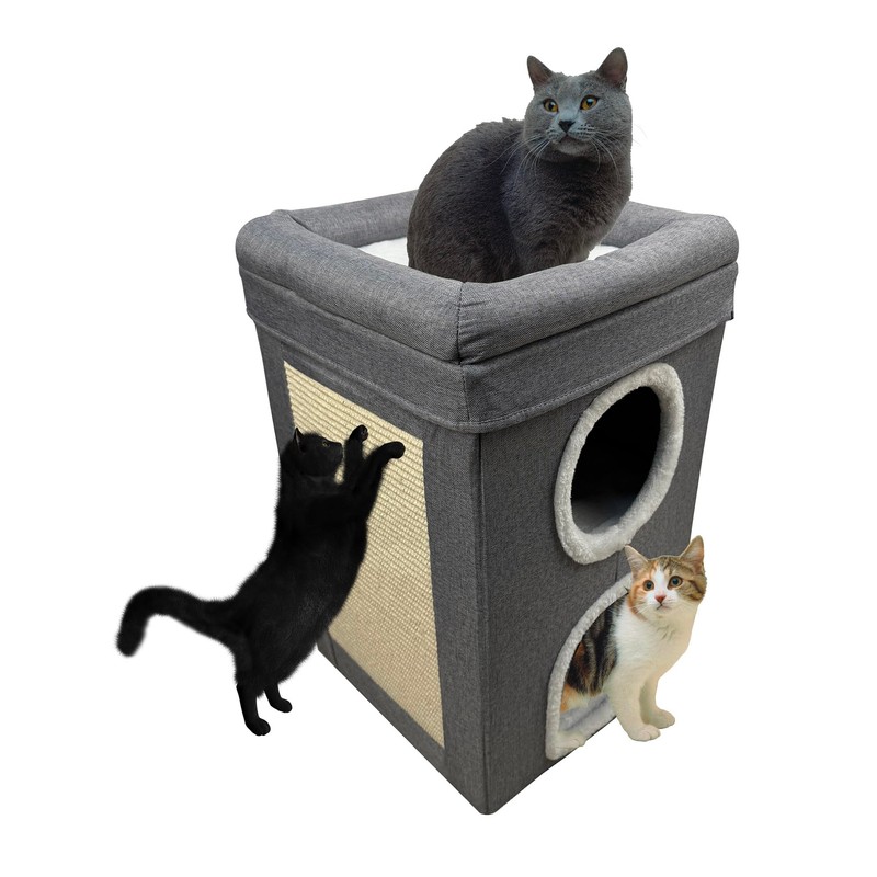 • 3-Level Cat Condo for Indoor Cats:This cat cube offers three spacious levels, including two hideaways and a top platform. Perfect as a cat cave bed or kitten hideaway, it provides cozy spots for your feline to relax and play