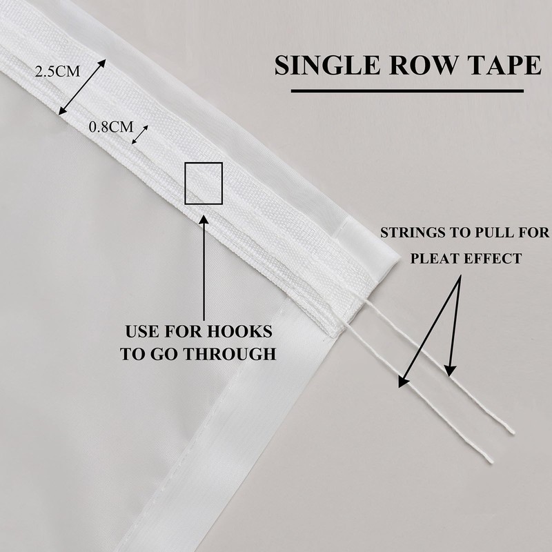 - Hanging: the curtain is fitted with a ruffle tape at the top, which can be easily attached to a rail system or curtain pole using curtain rings and hooks