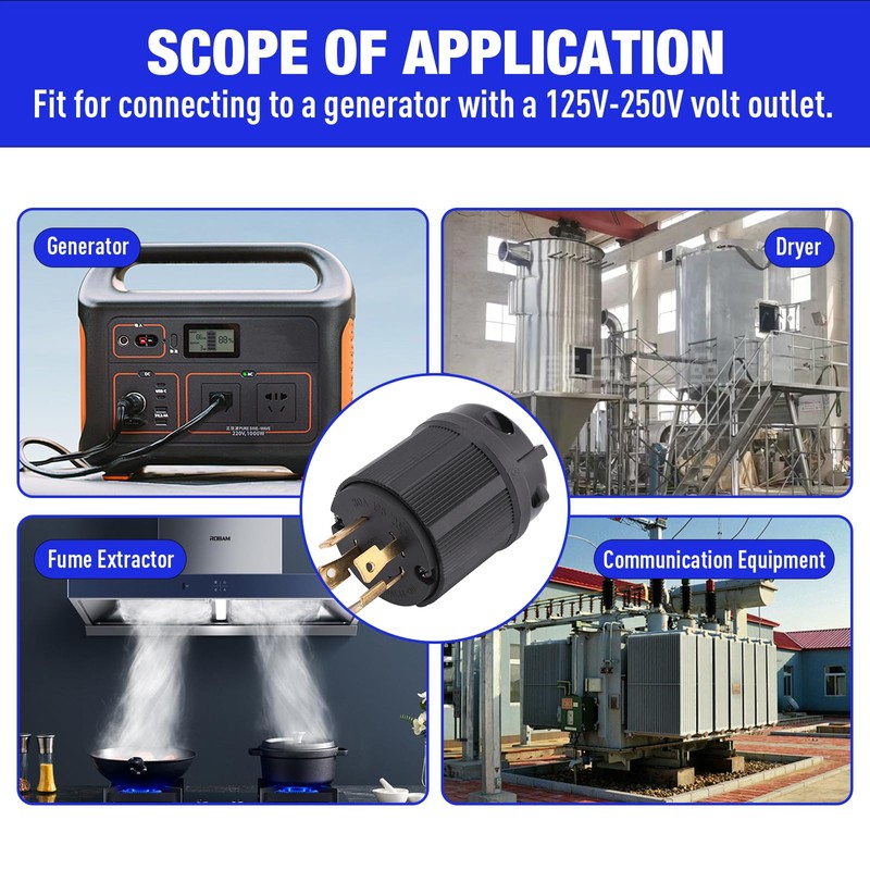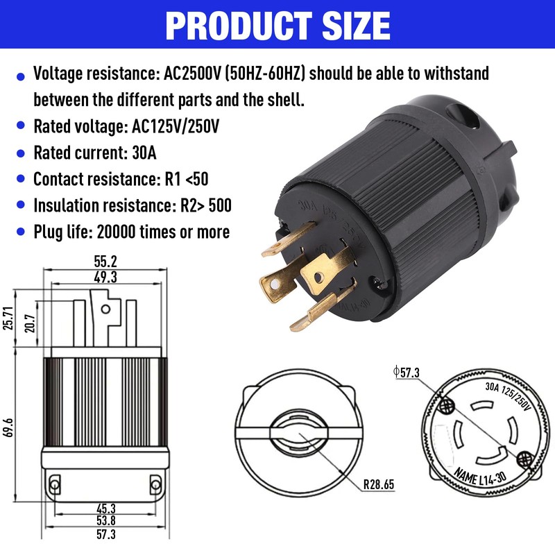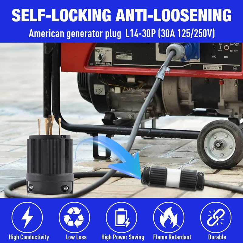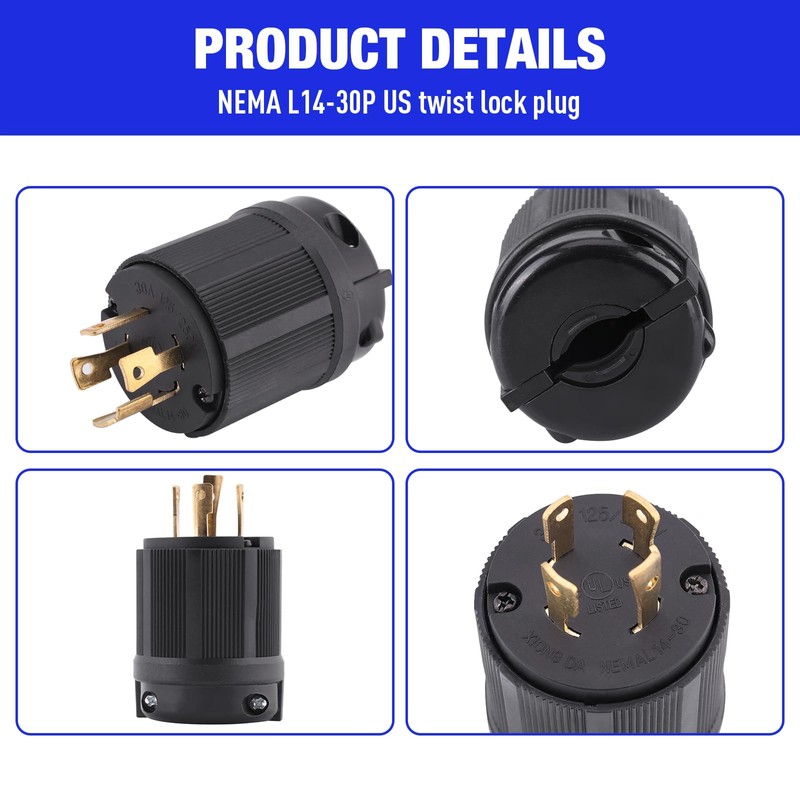 - 【Professional Specifications】This product features a 3-pole 4-wire design, compliant with NEMA L14-30P standards, suitable for 125V-250V, 30A rated current. It is ensuring compliance with electrical industry standards and device interchangeability.