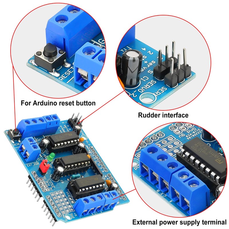 - 4-way H bridge: The L293D chip provides.0.6A (peak 1.2A) current per bridge with thermal outage protection, 4.5V to 36V