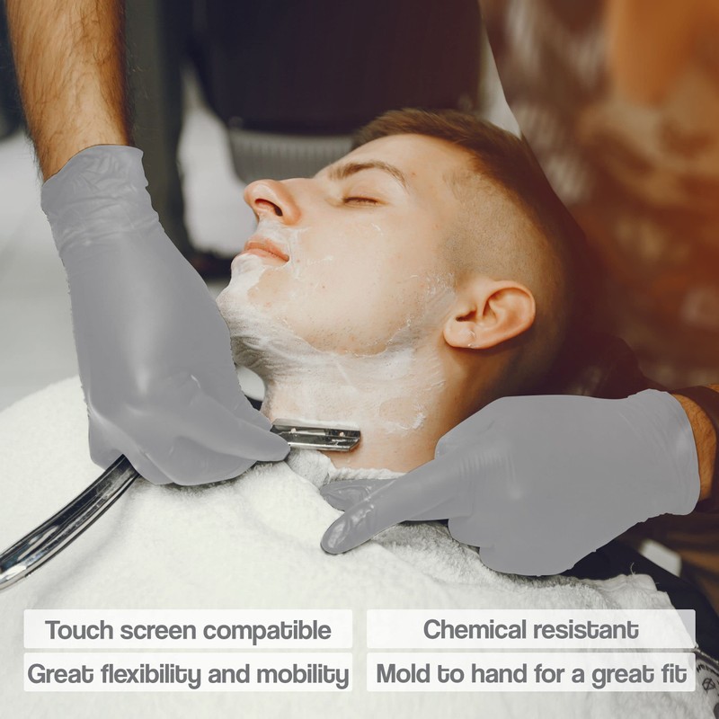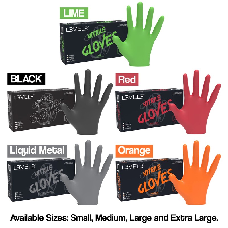 L3VEL3 Silver Nitrile Gloves - Delivers Outstanding Protection - Puncture and Chemical Resistant - Touchscreen Compatible - Made of Synthetic Rubber - Provides Optimal Flexibility - Size M - 100 pc