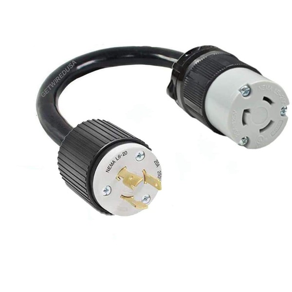 L6-20P 3-Pin Male Twist Lock 220/250V Plug To L5-20R 3-Prong Female Twist Lock 110/125V Receptacle Socket Outlet Adapter, Electrical Power Cord Convert, NEMA FX711-2