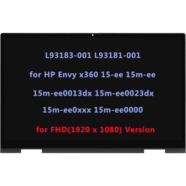L93183-001 L93181-001 LCD Replacement for HP Envy x360 m Convertible 15-ee 15m-ee 15m-ee0013dx 15m-ee0023dx 15m-ee0xxx 15m-ee0000 LCD Touch Screen Digitizer Assembly Bezel FullHD(1920x1080 -IPS)