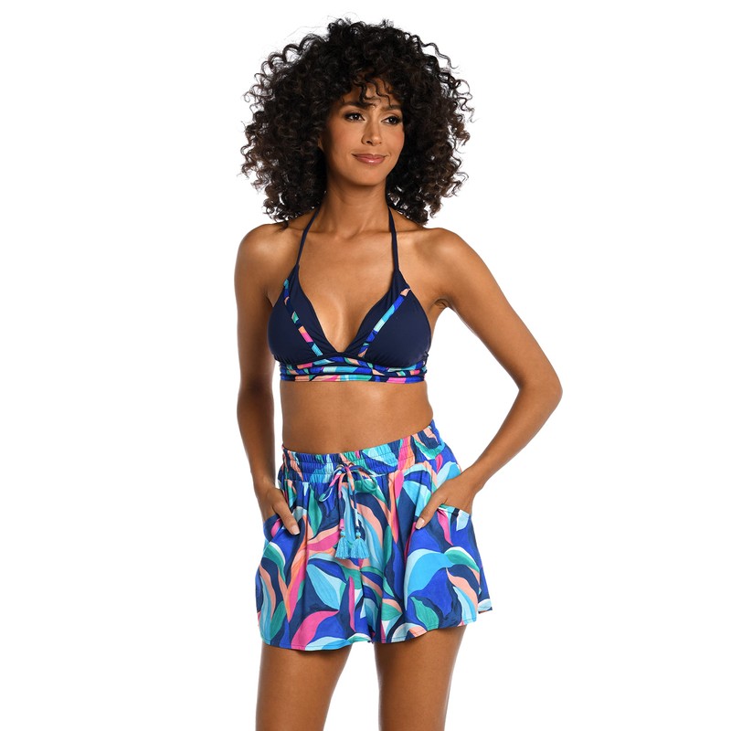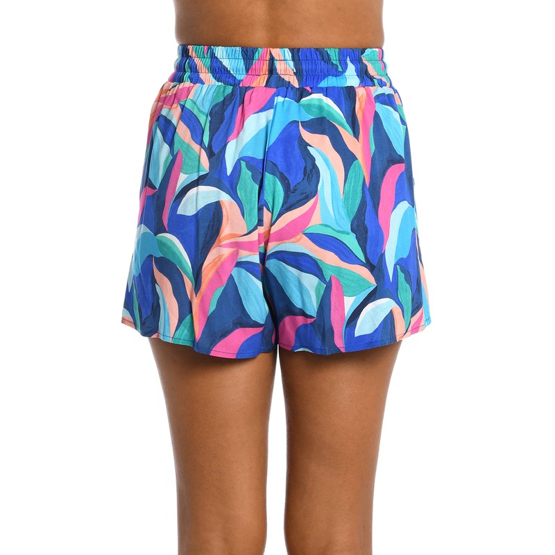 La Blanca Womens Beach Short Swimsuit Cover Up Swim Trunks, Multi//Painted Leaves, Small US
