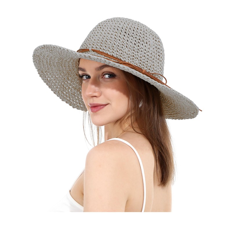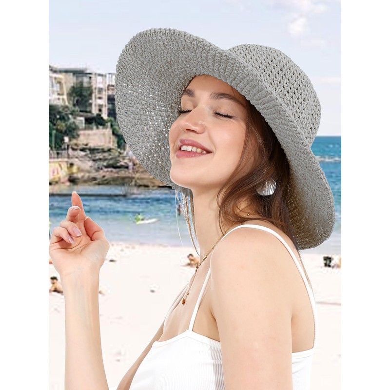 La Carrie Women Sun Hats Floppy Foldable Wide Brim UV UPF 50+ Straw Hat with Bow for Summer Beach(Gray)