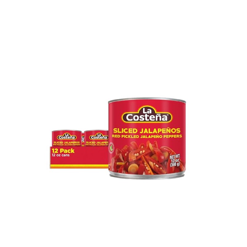 La Costeña Sliced Red Jalapeno Peppers for Mexican Food, Jalapeno Salsa, Enchiladas, Guacamole, Spicy Nacho & Taco Toppings - Pickled Vegetables - 12oz, 12 Pack Cans