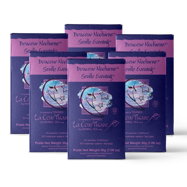La Courtisane Gentle Evening Herbal Tea, Kosher, Gluten-Free, 6 Packs of 20 Teabags (120 Teabags Total)