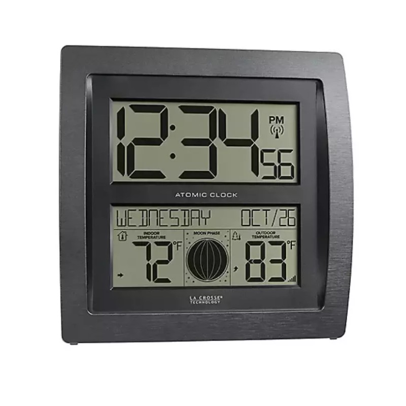 La Crosse Technology atomic clocks set the time and date automatically. Atomic clocks synchronize to a radio signal called WWVB that the National Institute of Standards and Technology (NIST) broadcasts continuously from Fort Collins, Colorado. When connected to WWVB signal, this Curved Digital Atomic Wall Clock will display precise time and date as well as automatically update for Daylight Saving Time changes (on/off option).
