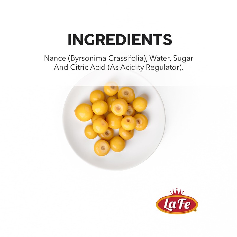 - 🍴Enhance your meals with La Fe Nance in Syrup! It’s the ideal companion for creamy ice creams, custards, or fresh yogurt parfaits. Use it as a topping for cakes or enjoy it straight out of the jar for a burst of tropical sweetness in every spoonful.