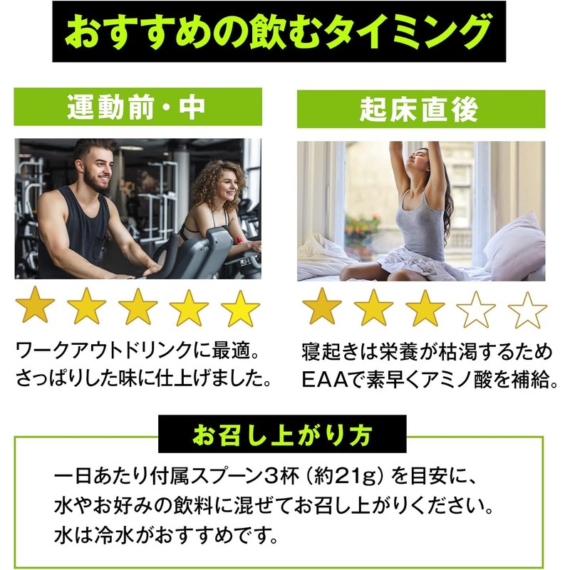 - đăHow to drinkă Drinking during training will support you until the end of your training (you can also use it as a pre-workout drink). It is also recommended for a nutritional charge right after waking up in the morning! Dissolve about 3 large spoonfuls (about 21g) of the included spoon in 500mL of water or your favorite beverage in a shaker and enjoy.